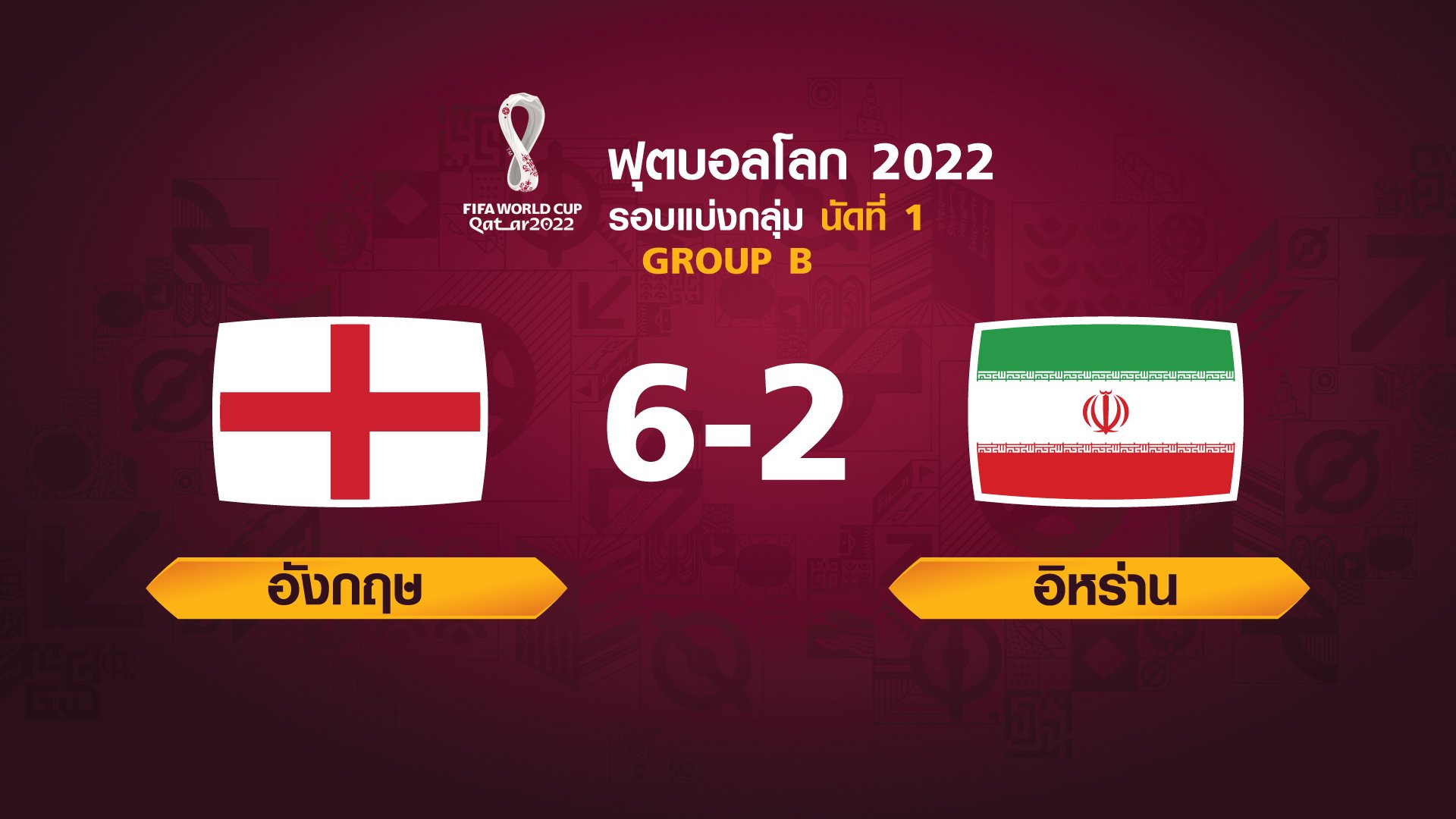 ฟุตบอลโลก 2022 รอบแบ่งกลุ่ม นัดแรก ระหว่าง England vs Iran